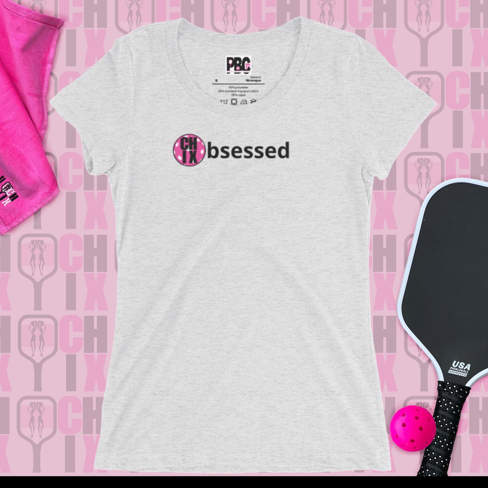 Show your pickleball obsession on and off the court with the Pickleball CHIX "Obsessed Collection"! This super-soft, form-fitting, breathable t-shirt with a slightly lower neckline than a classic t-shirt is perfect for ladies who love a slim fit, and of course, love pickleball!